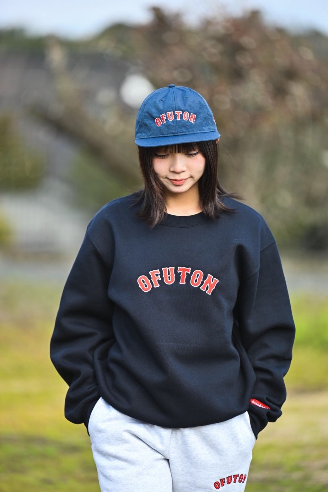 OFUTONキャップ、OFUTONスウェットパンツとの相性も抜群!
