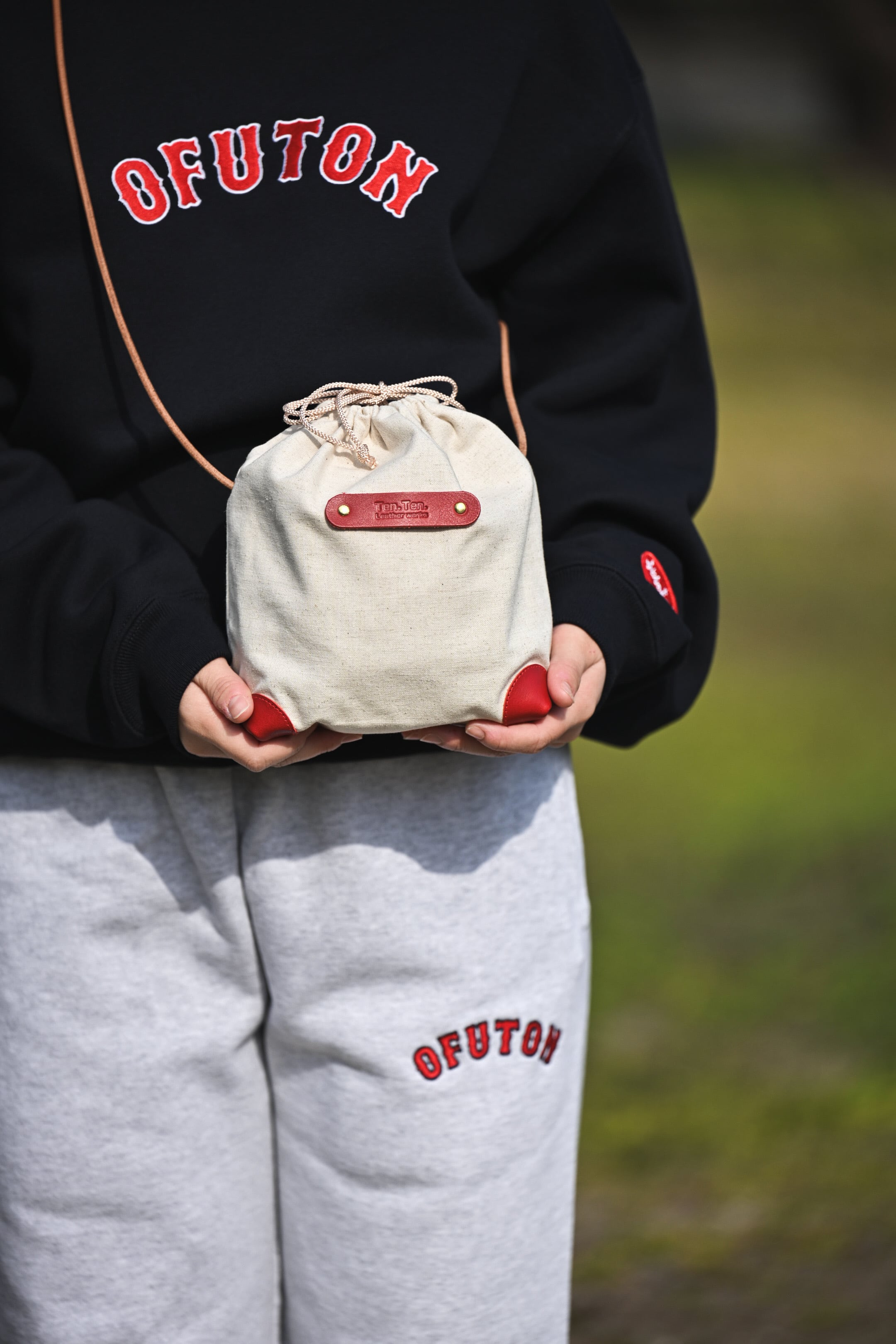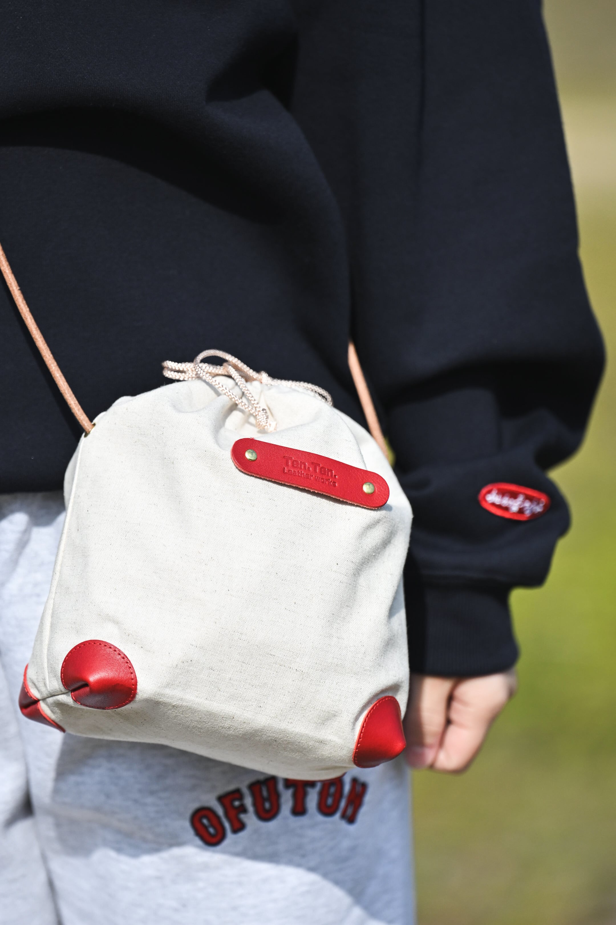 まつむらオリジナルサコッシュをベースに、レザーパーツをカスタム。