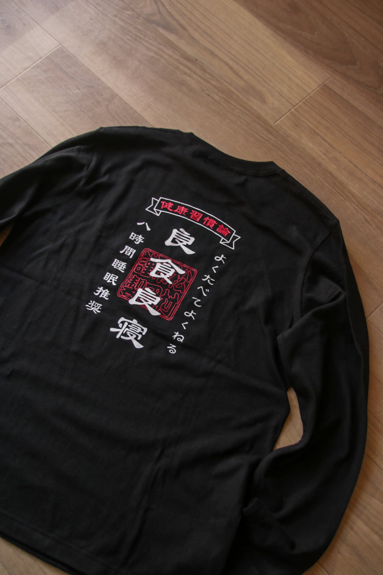 良食良寝 L/S TEE ブラック よくたべてよくねる